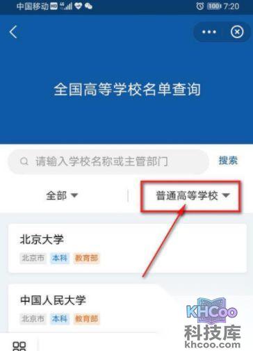 8、点击“普通高等学校”,可选择“普通高等学校”或“成人高等学校”,点击“确认”。