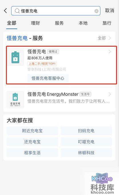 1.在支付宝首页,搜索“怪兽充电”