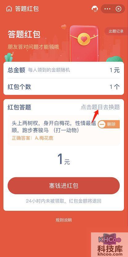 5.可以自定义红包金额和个数,也可以更换题目