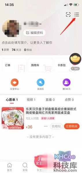 2、进入到【我的】页面中,点击右上角的【三横】,如下图: