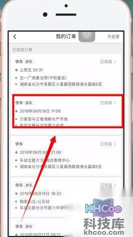 4、在这我们可以看到所有历史出行订单,点击需要删除的订单。