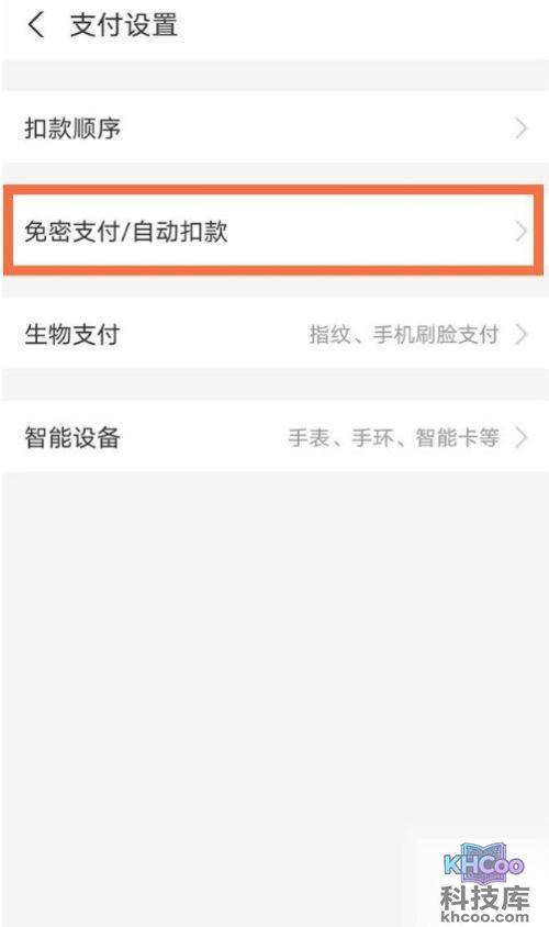 3、点击【免密支付/自动扣款】。
