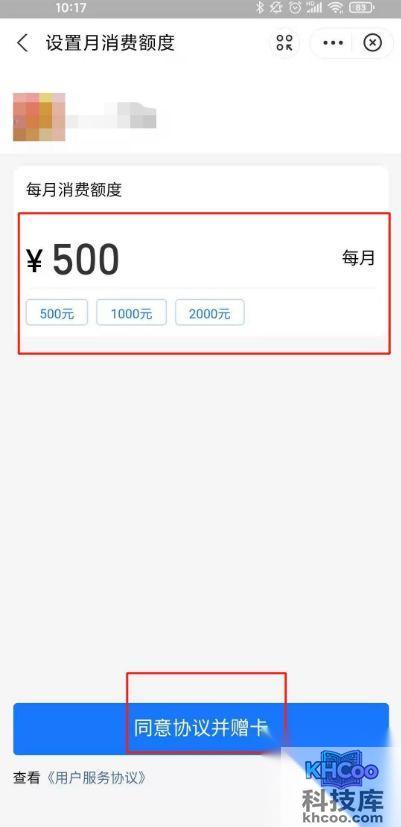 5、设定消费上限,点击同意协议并赠卡即可。