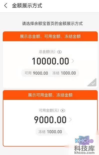 4、选择第二种展示方式,这样主体就仅展示可用余额了,冻结金额是下方小字显示。