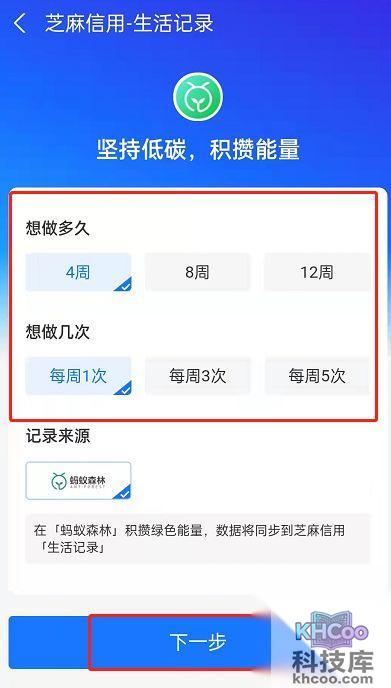6、您可以根据自身情况选择坚持时长和次数。完成后点击下一步。