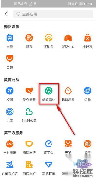 3、 在 教育 公益处,点击蚂蚁森林。