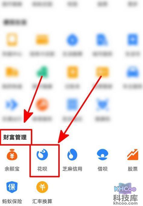 3、第三步:如果没有在首页找到“花呗”按钮,就点击“全部”按钮,然后我们就可以在“财富管理”一栏中找到“花呗”按钮