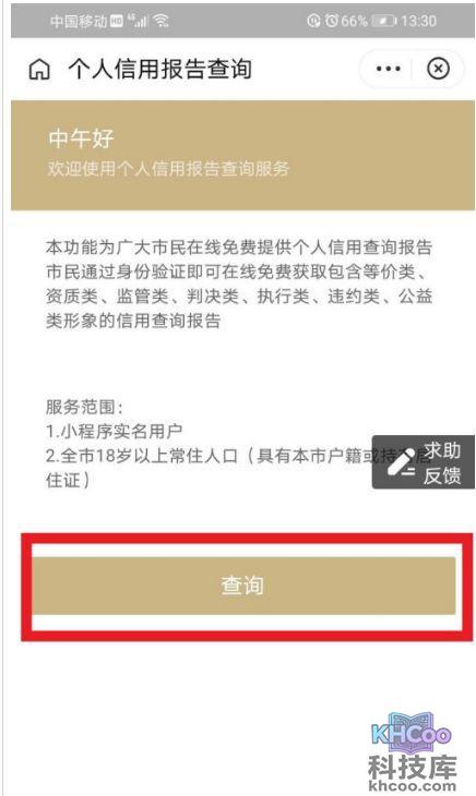 4、进入个人信用报告查询,点击“查询”确定,如图红色文本框:
