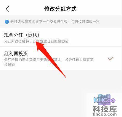 4、修改分红方式为”现金分红“,则分红所得金额会发放到账户中;