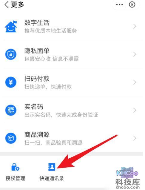 4、进入到更多页面后,我们找到【快递 通讯 录】,点击进入它