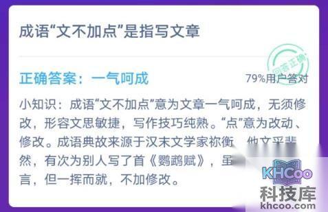蚂蚁庄园今日题目:成语“文不加点”是指文章